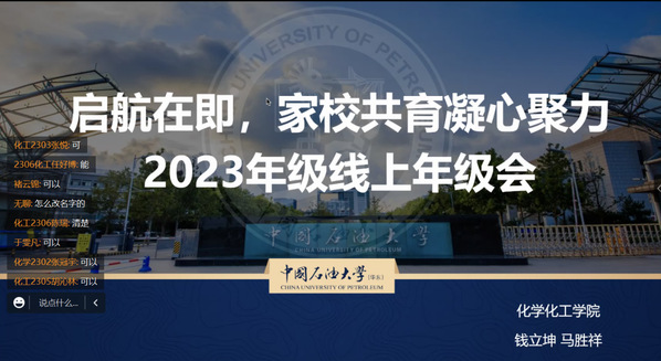 本次新生线上年级大会暨家长会,不仅帮助新生及家长快速了解并提前适应大学生活,更是了结合党的二十大报告,介绍了宏观国家政策、历史回顾以及当下行业形势,以实现中国式现代化为目标,对化院2023级新生做出思想引领,帮助他们明确所肩负的时代使命和行业使命,呼吁他们要增强自信,与时代同行,无愧母校,无愧祖国,无愧生命。