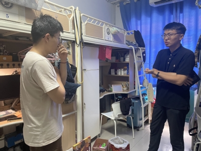 2021级辅导员窦雅琴、孙新龙查看学生宿舍