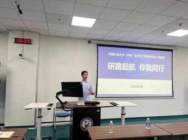 最后,研究生辅导员郭孟老师以“研路起航、你我同行”为题,先是简单介绍了学校辉煌的办学历史、优越的地理位置、优美的校园环境、汇聚的办学资源、闪亮的石大名片等,随后介绍了学院研究生的管理体制、党员发展、学术活动、文体竞技、科技竞赛、奖勤贷助、就业工作等,并用一些典型案例重点强调了实验室安全、防范电信诈骗、交通安全、心理安全等工作,为2023级研究生快速适应研究生生活指明了方向。
