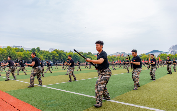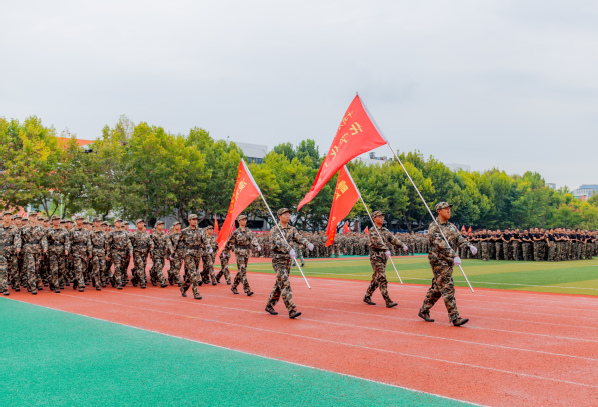 伴随着雄壮的国歌声,结业典礼开始,宣告着21天的军训工作将在今天画下最后的句号。我院九营雷霆二十连、凌云二十一连、御风二十二连、骄阳二十三连在主席团的检阅下,喊着嘹亮的口号,迈着整齐的步伐,展示着化院学子的自信和刚强,彰显了新一代化院人昂扬向上的精神风貌。军训成果汇报展示中,参训同学依次表演了捕匕首操军体拳刺杀操和旗语等科目,同学们身姿坚毅挺拔,口号震耳欲聋,其中,我营负责刺杀操科目演练,体育场上,一声声“杀”冲破云霄,展现着太阳成集团tyc3345523级学子蓬勃向上的朝气和顽强拼搏的精神。