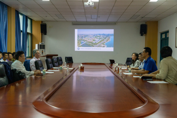 活动伊始,刘义代表学院对David Lewis以及乔世璋的到来表示热烈的欢迎,并由李高青就学校国际合作情况以及学校发展现况、曾景斌代表学院就化工学院情况、国际合作情况以及人才培养设想进行了介绍。David Lewis就阿德莱德大学办学情况,校园风光,以及学院教学资源等进行了详细的介绍,并由乔世璋介绍了阿德莱德大学的国际合作情况以及人才培养设想。