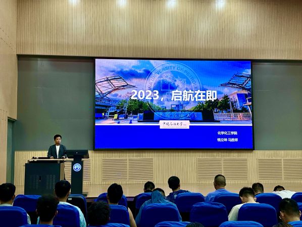 首先,钱立坤向大家介绍了大学的可用资源,主要涉及辅导员的工作职责、学院及学校的办公场所等等。他表示,学校和学院的每位领导及老师积极关心大家,在未来的四年里会解答每位同学的疑惑,帮助同学们更快适应大学的环境,并且强调大家在遇到困难时,要学会求助身边的老师及朋友,有效解决问题。然后,钱立坤展示了他给同学们写的一封入学信。在信里,钱立坤不仅介绍了精彩的大学生活该如何度过,更是对大家做出了三点要求,一是敬畏大学、认清自由;二是学会专注、懂得享受;三是自主规划、应对变化。钱立坤在帮助新生们更好地适应大学生活之余,还教导同学们应该踏实、努力,为四年的时光书写优秀的答卷,并以三毛老师的话结尾,“我要你静心学习那份等待时机成熟的情绪,也要你一定保有这份等待之外的努力与坚持”,以此来督促同学们坚定人生理想,矢志不渝。接着,钱立坤强调了在大学里面同学们应完成的任务和要求,不仅要汲取专业知识,也要注意生活上的各种问题。最后,钱立坤祝愿大家以梦为马,不负韶华,都能拥有一个快乐的大学时光。