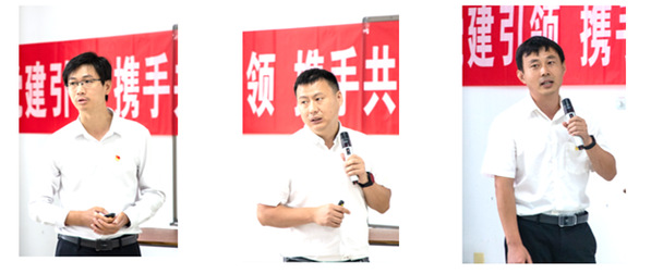 随后,中石油青年科技人才能力提升班临时党支部3位党员分别代表企业、研究院和设计院介绍了中石油党建与科研工作。来自中国石油广西石化公司的党支部书记吴章柱指出,建设标杆党支部从“党务工作”及“党建提升”两大方面入手,以“标准化、规范化、系统化”推动基础性的党务工作,党务提升工作从“文化引领、有机融合、构建大党建格局”入手,最终达到固堡垒强管理、抓融合促发展的目的。中国石油吉林石化公司刘振国从科研角度介绍中国石油合成橡胶领域,主要工作包括催化剂的开发、新产品开发、生产工艺开发、后加工技术开发及市场服务。同时,结合工作经历从初入职场、与同事合作、职业素养三个方面与大家交流工作感悟。中国石油昆仑工程有限公司崔久涛分享了设计工作中的心得体会,他表示设计工作除了学习和基本功的锻炼,作为设计师能够切实体会、经过自己的实践去做出决定;另外,在探索过程中要注重向高校学者的学习。