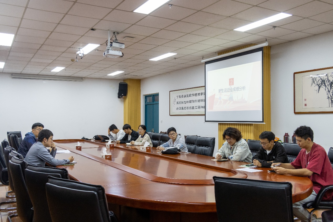 10月17日,学院体育健康发展中心组织召开2023年新生运动会分析总结会,学院体育健康发展中心指导老师王兆兴,学院团委书记魏孟吉老师参加会议。