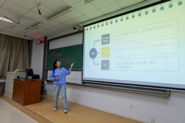 会议伊始,宋怡漫讲解了电信诈骗的主要手段及严重危害,分享了自身遭遇电信诈骗的经历,警示同学们提高警惕性,勿轻信任何转账要求,尤其是班委突然要求缴纳班费。随后,全体同学集体观看了国家反诈中心宣传片,大家深刻认识到了反诈的重要性。