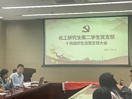 2023年10月31日,化工研究生第二学生党支部在逸夫楼重质油学术报告厅组织召开十月份组织生活暨支部大会,会议由支部书记康博远主持,支部全体党员参会,部分积极分子及发展对象列席会议。