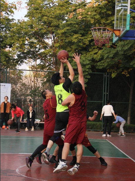 教职工篮球比赛分组根据各单位抽签(男、女队)分为A、B、C、D小组参赛队伍,分组后小组循环积分,比赛胜队积2分,负队积1分,弃权积0分,积分前两名队伍出线,小组出线队伍采用小组交叉淘汰赛制,胜队进入四强和冠亚军比赛。本次篮球赛共有49支队伍、600余名教职工参赛。