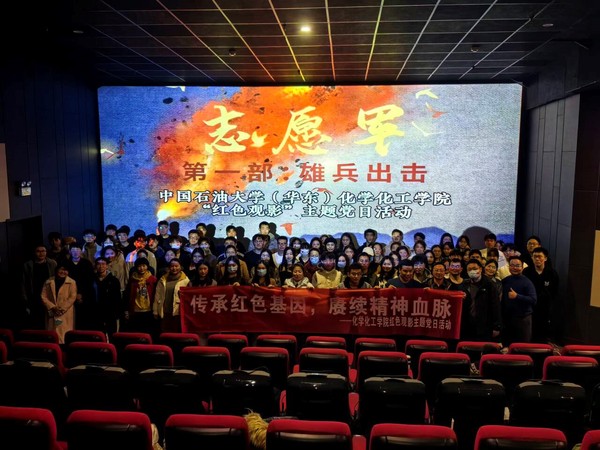 为纪念抗美援朝战争胜利70周年,深入推进党史学习教育,弘扬爱国主义精神,厚植爱党、爱国、爱社会主义的情感,11月11日,在学院党委支持下,学院生物与能源化工系教工支部、生物与能源化工系研究生党支部联合举办以“传承红色基因,赓续精神血脉”为主题的观影活动。学院100余名教职工及学生党员共同观看了红色电影《志愿军:雄兵出击》。