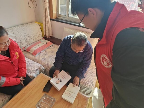 随后刘晓燕向各团支部介绍了此次活动路线及任务,并将四个支部团员划分为四组,分别走访不同老党员并带去学习书籍。在上门拜访过程中,刘晓燕对老党员介绍了在场团员来意,支部成员们也给老党员们送去学习书籍并对老党员表示关怀。走访过程中,刘晓燕多次向团员们介绍了社区党支部日常工作,如针对社区老龄人群的反诈骗工作,排查旧社区消防安全问题等,让团员们受益匪浅。