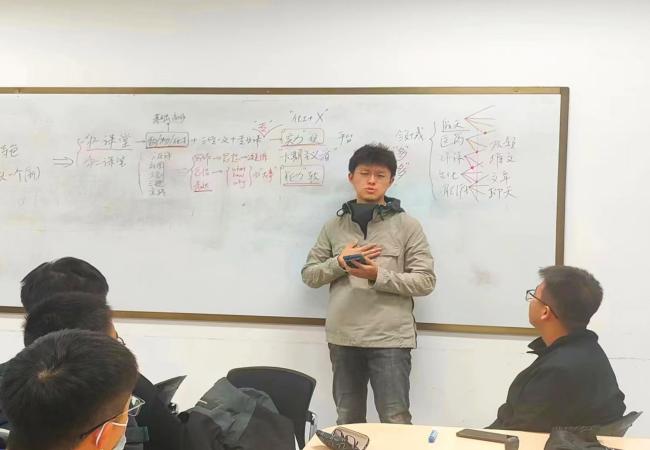 会议开始,金鑫开门见山指出当今社会存在的“内卷”现象,指出当代青年应争当行业第一人而非一味自我内耗。接着,金鑫提出大学第一课堂对于就业的重要性,第一课堂是培养大学生“硬实力”的平台,奠定了未来就业的坚实基础,继而指出第二课堂是培养大学生“软实力”的平台,明确了具有写作、总结与表达能力是未来能够更好就业的前提。最后,金鑫从未来就业方面存在的问题出发,指出当今的大一新生应如何从现在做起,找准适合自己的“赛道”。随后,孙兆良从自身经历出发向同学们分享了学习方面的经验,提到同学们应高效学习而非在低质量学习中进行自我精神内耗,找准自己在焦虑时的放松方式,以及积极与人沟通交流,提高自己的人际交往能力。