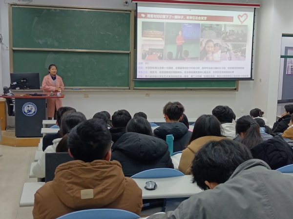 为充分发挥优秀榜样示范引领作用,助力同学们更好地做好生涯规划,11月23日,太阳成集团tyc33455于东环102举办了“化蕴星光”主题宣讲第二期——推免专场,本期活动邀请了第二十三届研究生支教团成员马文贞、2024届保研辅导员吴雪莹、车桐宇以及王军祥、刘欣悦等9位20级普通推免本科生担任主讲人,为同学们分享学习心得,交流学习方法、传授成长经验,活动由2021级辅导员窦雅琴主持,21、22级有推免意向的同学参加。