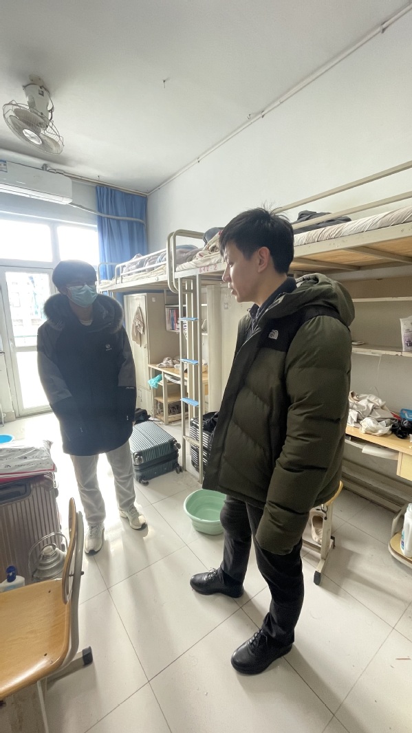 会上,老师们详细了解几位留校学生的学习和生活情况,询问他们的留校原因及需求。张永宁询问了两名博士生张帝、李恒在实验成果方面的进展,叮嘱他们要重视实验室安全、充分利用在校时间做好科研工作。他表示学院将切实解决同学们的实际困难,让大家在学校住着安心、舒心、开心,并祝愿同学们能在学校度过一个平安、愉快而充实的春节假期。徐光辉关切询问了20级维吾尔族学生阿米娜木的就业情况,并建议以阿米娜木为代表的应届少数民族学生通过“西部计划”等渠道心系家乡、服务家乡、回报家乡。博士研究生张帝表示:“这已不是我第一次留校过年,每年学院都会以各种形式看望慰问留校学生。虽然不能回家和家人团聚,但是学校有同学、有老师,我依旧能感受到了家的温暖,也感受到了学院的关爱,祝各位老师新春快乐。”会后,学院为全体留校学生发放牛奶、干果等慰问品,并合影留念。