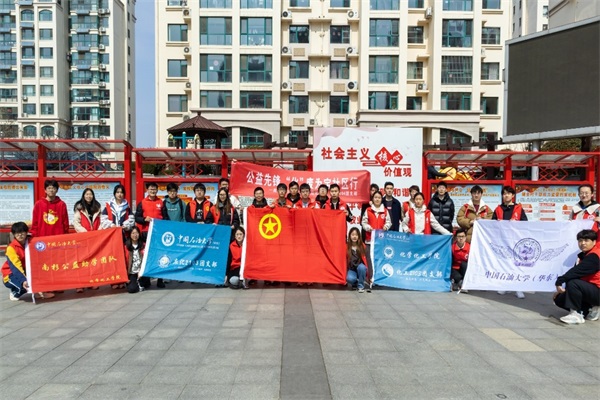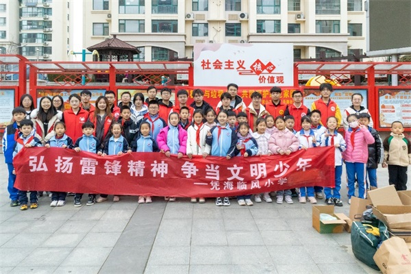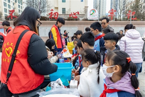 为弘扬雷锋精神,展现支部青年风采,提升居民环保意识,应化2103、化工2103、应化2203、应化2204团支部联合春雨公益志愿服务队、太阳成集团tyc33455南杉支教队及凭海临风小学于3月16日在灵山卫街道东岳路社区开展“公益先锋,‘化’废为宝社区行”主题实践活动。