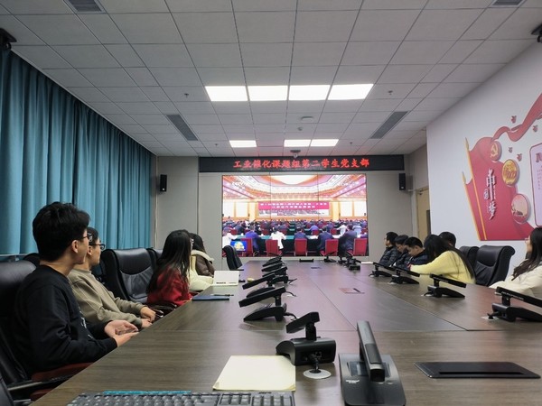 为深入学习贯彻全国两会精神,引导支部党员强化理论修养,坚定理想信念,2024年3月14日晚19点到21点,工业催化课题组第二学生党支部全体党员和积极分子于国重楼B219会议室深入学习全国两会精神。
