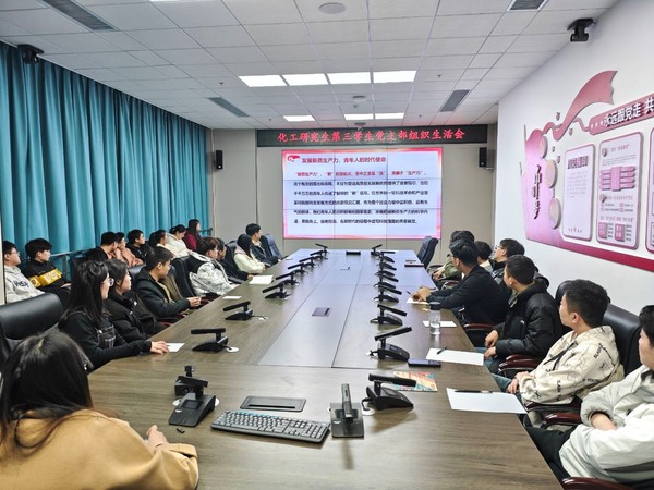 2024年3月15日下午,化工研究生第三学生党支部在国重楼217会议室开展“学习贯彻两会精神,科技创新催生新质生产力”组织生活。活动由支部书记鲁丹主持,支部全体党员、积极分子参与。