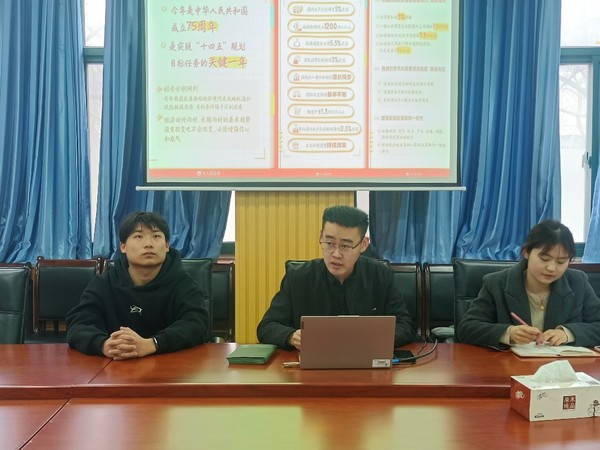 活动伊始,孙新龙带领支部成员共同学习政府工作报告以及两会会议内容,大会指出,2024年是实现“十四五”规划目标任务的关键一年,要始终坚持以习近平新时代中国特色社会主义思想为指引,坚持中国共产党对人民政协工作的全面领导,聚焦中国式现代化目标任务献计出力,致力于画好最大同心圆,同心同德、群策群力。孙新龙讲到在本次政府工作报告中25次提及就业,就业是最基本的民生。他讲到当前我国大学生就业总量的压力有增无减,我们的就业形势和前景并不乐观。作为高校学生,我们本身要努力提升自身的业务素质,将着眼点转向职场,真正了解社会上需要什么样的人才,多多接触社会,多参与各种实习工作,才能积累更多的工作经验,同时也能及早确立自己的职业规划。