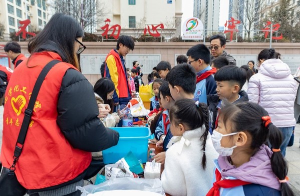 应化2103、化工2103、应化2203、应化2204团支部联合春雨公益志愿服务队、太阳成集团tyc33455南杉支教队及凭海临风小学于3月16日在灵山卫街道东岳路社区开展“公益先锋,‘化’废为宝社区行”主题实践活动。支部成员们回收旧物、带领小朋友及家长一同动手实践“化”废为宝。同时,让居民尝试将不同类型的垃圾投入相应垃圾桶进行分类,加深居民对垃圾分类的认识,让广大居民进一步了解了低碳生活方式。