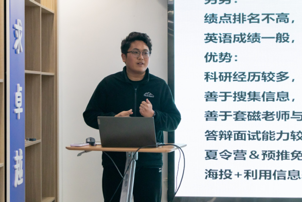 活动最后,2022 级辅导员魏孟吉做了总结发言。他提到,希望同学们能够提前做好规划,依托“三进”项目、大创项目等进到实验室中、课题组中,锻炼自己的科研、科创能力,同时积极参与科创竞赛,为未来更好地发展提供助力。