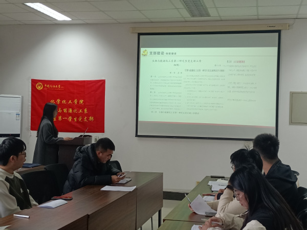 4月1日,生物与能源化工系研究生第一学生党支部于逸夫楼340开展2023年度民主评议党员工作。本次会议由党支部书记郑亚茹主持,大会应到党员37名,实到党员34名。