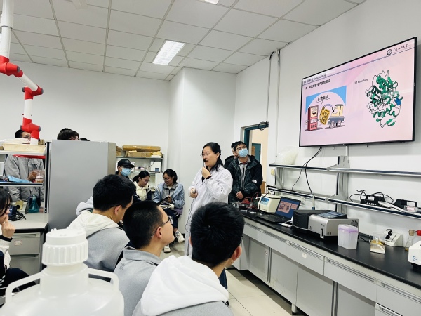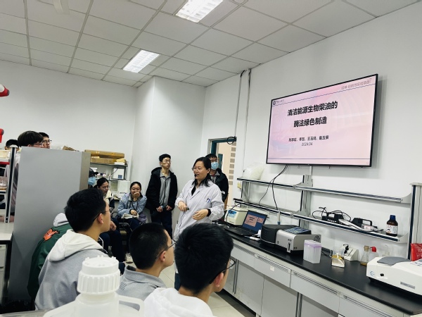 观察实验完成后,陈翠霞和李慧老师讲解并演示了与生物技术快速发展相关的3个具有代表性的实验,包括细菌基因组的提取、DNA的体外扩增以及琼脂糖凝胶检测。在讲解和演示基础实验的基础上,陈翠霞老师进一步拓宽学生的思维,将基础的实验操作技能延伸至清洁能源生物柴油的酶法绿色生产探究性实验,加深学生对基础知识的理解和应用,激发学生应用生物学基础知识,响应国家“碳中和、碳达峰”的重大技术需求,开发新型清洁能源,提升学生的家国情怀。