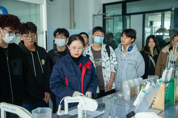 随后,师生共同走进金能化学的实验中心,先后参观了PP制样室、温恒湿间、水质环检室、高温实验室、标液配置室、重量分析室等实验室,并近距离观察了部分设备器材以及操作流程,使同学们对金能化学企业的工作环境和流程有了一个初步的认识。