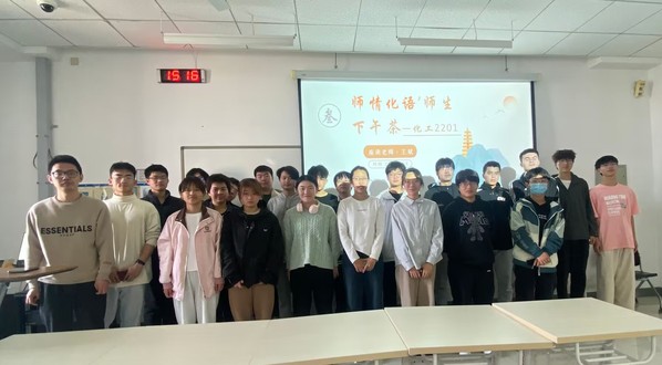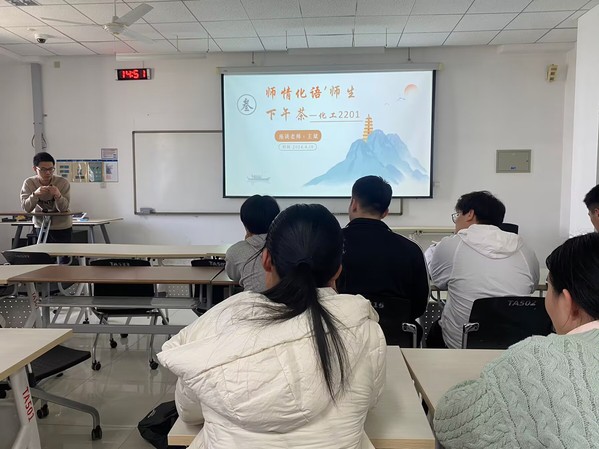 为总结班级上半学期的学习情况,指导未来发展方向,化工2201班于4月18日在综合楼501举办“师情化语·师生下午茶”活动。本次活动邀请到化工2201班班主任王斌老师,班长冯元主持,班级全体同学参加。