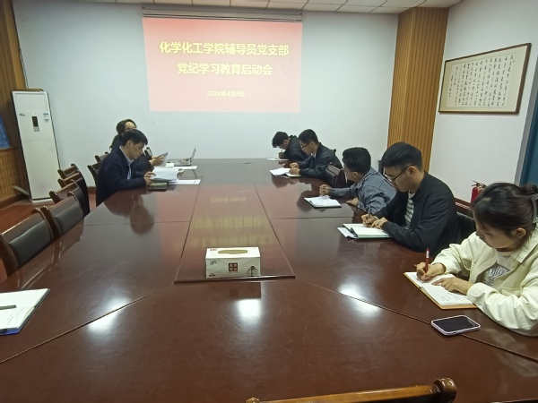 三是要聚焦主体责任,强化组织领导,着力确保党纪学习教育取得扎实成效。党支部要认真组织,干部要示范带头,工作专班抓好工作落实。学院党委将充分利用学院主页、缤纷化蕴等媒体,注重宣传引导,营造浓厚的学习教育氛围;要强化督促指导,对学习教育全过程指导把关;要强化“爱党爱国、崇尚学术、追求卓越”的新时代大学文化,进一步完善学院制度建设,提升科学决策水平,做好党纪学习教育与本科审核评估、一流学科建设、拔尖人才培养等重大任务的结合,以高质量的党纪学习教育促进学院中心工作,全力推动建设中国特色能源化工领域世界一流的高水平研究型学院。