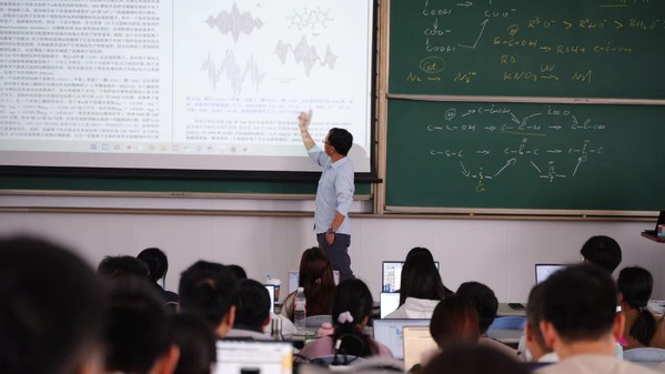 苏教授在讲堂群西廊303教室,为师生们带来了题为《电子顺磁共振波谱》的课程。课程伊始,由副院长胡涵发表引言。除了我院的师生积极参与外,此次活动还吸引了来自材料学院、新能源学院,以及中国海洋大学、青岛大学、山东大学、青岛科技大学等高校的六十余名师生。