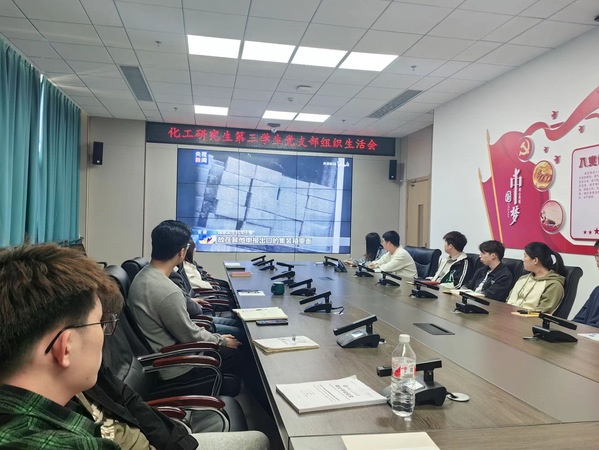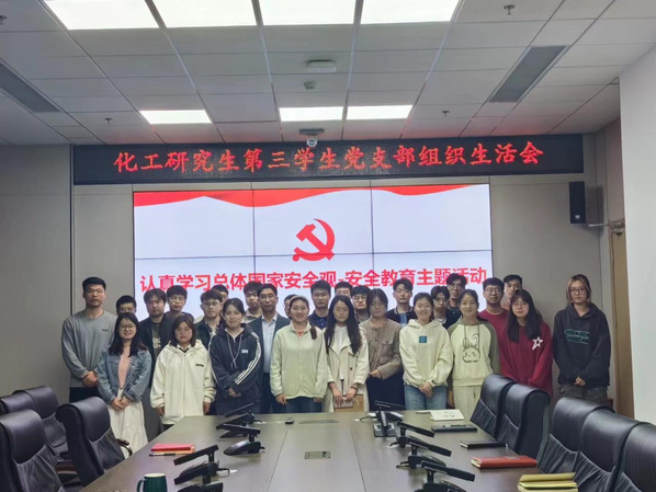 2024年4月21日上午,太阳成集团tyc33455化工研究生第三学生党支部在国重楼217会议室开展学习总体国家安全观组织生活。会议由支部书记鲁丹主持,支部全体党员、积极分子参与,学院辅导员郭孟老师出席会议。