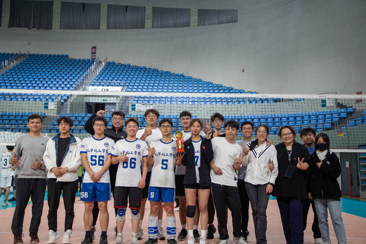 赛后,化院排球队队员丁纯说到:“获得师生杯冠军的奖项让我感到无比兴奋和自豪。这是我们化院排球队团队长期以来共同努力的结果,每一位队友都付出了巨大的努力和汗水。在比赛中,我们经历了种种挑战,不断的进行磨合,我们的学生跟老师始终保持着团队精神和合作精神。当最终的胜利属于我们时,那种喜悦和成就感无法言表。这个冠军不仅是对我们院排球技术和表现的肯定,更是对我们团队凝聚力和毅力的认可。我相信这次的胜利将激励我们继续努力,希望化院排球队以后越来越好!”