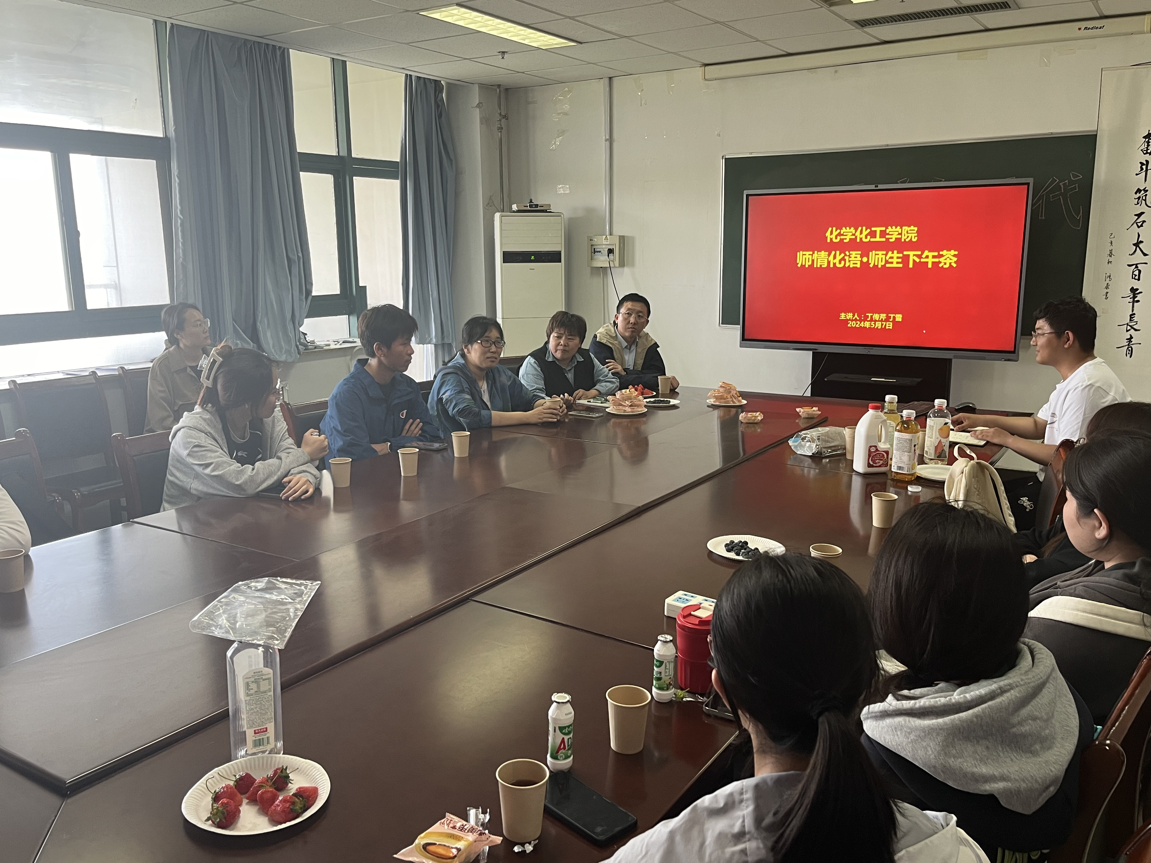 为加强班级班风学风建设,帮助同学们做好生涯规划,5月7日下午,化工2205班于工科A335开展“师情化语·师生下午茶”活动。班主任丁传芹老师邀请了《化工热力学》课程教师丁雪和化学工程系党支部书记于筱溪参加活动,同时特地邀请到青岛炼化公司刘煜工程师(2010级化学工程与工艺专业毕业生)分享就业经验。活动由班长张轩豪主持。