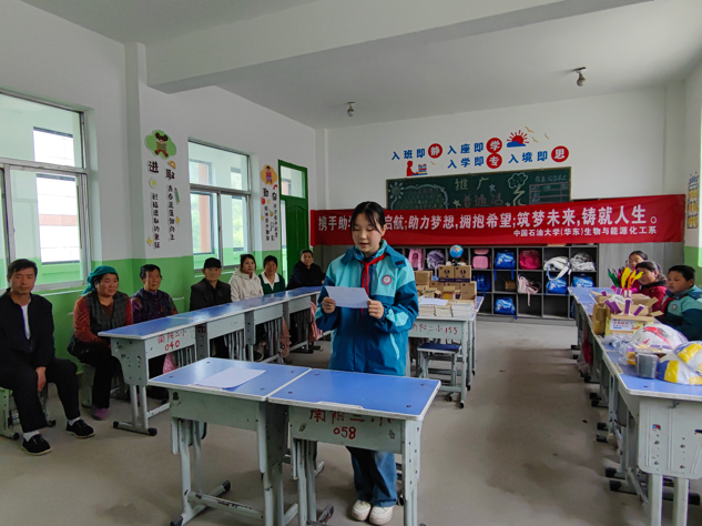 仪式伊始,南阳二小校长陈庭东代表学校对生物与能源化工系各位师生的爱心捐助表示衷心感谢,并对6名受助学生的学习状况进行了介绍,同时寄语受助学生,希望同学们珍惜求学机会,努力创造出精彩的人生,尽自己所能回馈社会。随后,生物与能源化工系教工党支部书记曲剑波对南阳二小教师们的无私奉献和谆谆教导表示感谢,同时以南阳二小的杰出校友虎祥同志为例对同学们提出了殷切希望。他提到,虎祥同志目前在中国石油大学攻读博士学位,本硕博就读期间,在学习成绩、学生工作、科研成果等方面取得了优异的成绩,志向于毕业后回到家乡、建设家乡,希望同学们以虎祥博士为榜样,养成良好的人生品德,好好学习,努力奋斗,希望通过此次爱心和学校教育改变命运,成长为社会栋梁之材。最后,受助学生表示将牢记父母师长的嘱托,明确“滴水之恩当涌泉相报”,不断提高自己的知识水平,均衡各科发展,做到勤俭节约、刻苦学习、努力拼搏,以实际行动证明自己,不辜负爱心人士的期望,以优异的成绩来回报社会。