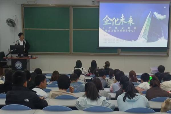 本次宣讲由本研化工2301杨昊和刘星竹主讲,就其寒假期间的实践工作内容,为支部成员介绍未来就业相关企业。杨昊及刘星竹所在的寒假实践小队前往万华化学集团股份有限公司进行了深入了解和实地考察。实践小队对企业及其环境,企业福利,工作氛围等进行了调研与分析。在考察期间,成员们通过在理论上对企业的背景了解,以及在实践中对企业氛围的感受,让成员们对于该企业有了更全面的认识。两位宣讲人员从化学化工行业的角度出发,分享了最新的科技成果和行业发展趋势,讲解了企业及其环境、企业福利、工作氛围等基本情况。