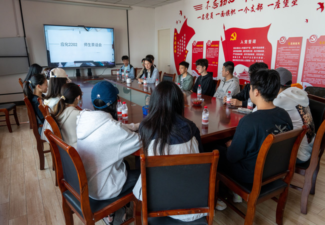 为班级班风学风建设,帮助同学们做好生涯规划,5月12日下午,应化2202班于工科A629开展“师情化语·师生下午茶”活动。班主任杨修洁老师作为主讲老师与同学们密切谈心。活动由班长磨安正主持。