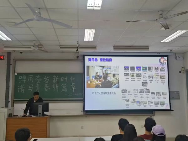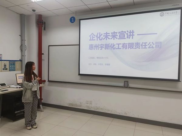 中国石化青岛炼油与惠州宇新实践小队的罗昊炜和尹思怡,就其寒假期间的实践工作内容,为学生们介绍未来就业相关企业。他们讲到他们深入企业当中进行实地考察,在做足前期调研准备后,进行深入交流。通过一次实践让成员们对企业有了更全面的见解,同时了解到企业背景与企业氛围,能够从各个角度了解到企业。启发现场学生对未来的思考与规划。