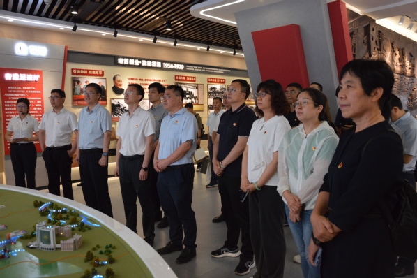 随后,两校教师在江苏油田组织部部长吴伟林、工程院院党委书记吉文献、副院长王彪等的陪同下,参观了江苏油田展馆,了解江苏油田的发展历程和“12345发展战略”,学习了江苏油田践行习近平总书记“端牢能源饭碗”殷切嘱托,“艰苦创业、找油报国”的担当精神以及在追逐石油梦想中落实生态文明理念建设生态油田的责任感,特别是在加强党的建设方面的特色做法。大家对江苏油田坚持“矢志找油报国、保障能源安全”的使命和“厚德笃行唯实创新诚信共享”的企业精神,在页岩油战略性突破、绿色能源建设方面做出的贡献表示赞赏。