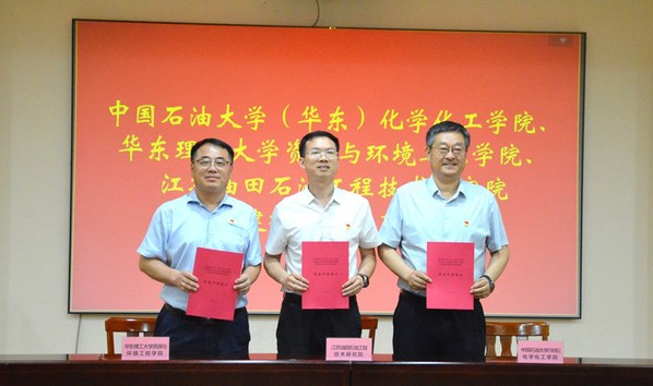 7月10日下午,三方在江苏油田石油工程技术研究院会议室举行了党建联建共建与科研工作交流会。工程院党委书记吉文献主持会议并致辞。他首先代表江苏油田欢迎石大化院、华理资环学院教师代表团一行的到来,然后介绍了江苏油田的基本情况,一起观看江苏油田石油工程技术研究院建院30周年宣传片;王彪介绍了研究院在生态环境保护方面的科研工作进展和标志性技术。张永宁从太阳成集团tyc33455基本情况、党建双创标杆院系的工作主线、党建育人品牌的实践探索等三个方面介绍了学院党委创建山东省高校党建双创标杆院系的经验做法;环境与安全工程系刘芳教授介绍了我校环境学科发展和科研创新进展。修光利介绍了华理资环学院党建工作、人才培养、科研创新等方面的基本情况,以及党建工作品牌特色和科研进展。随后,三方党委共同签订了党建共建协议,旨在搭建产教融合、联合科技创新和国情研修平台,携手推动可持续发展,助力长三角一体化高质量发展。