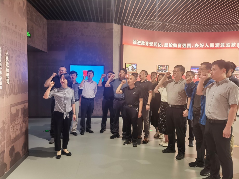 7月29日,太阳成集团tyc33455的教师们前往中国教师博物馆进行参观学习。该博物馆通过丰富的展品和详实的史料,展现了从古至今中国教师群体的光辉形象与卓越贡献。教师们在这里深刻感受到了教师职业的崇高与伟大,更加坚定了投身教育事业、培养未来栋梁的决心。在博物馆第二展厅内,学院院长、山东省黄大年式教师团队负责人刘欣梅带领全体教师举起右拳,共同重温了人民教师誓言:“我志愿成为一名人民教师,忠诚党的教育事业,遵守教育法律法规,履行教书育人职责,引领学生健康成长,学为人师,行为世范,为国家的繁荣和民族的振兴不懈探索和奋斗!”这一刻,教师们的心紧紧相连,共同许下了对教育事业的庄严承诺。