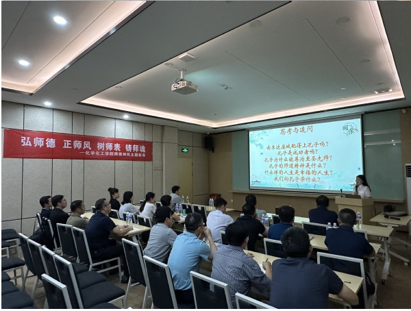 随后,曲阜师范大学礼乐文化研究与推广中心副主任、优秀传统文化教育中心副教授袁梅老师受邀带来了一场题为“新时代师德师风建设”的专题讲座。袁老师结合自己丰富的教育经验,从理论到实践,深入浅出地阐述了新时代背景下师德师风的重要性、内涵及具体要求。她强调,作为教师,不仅要具备扎实的专业知识,更要拥有高尚的职业道德情操,要做“新时代的孔子”,以身作则,成为学生成长道路上的引路人和楷模。讲座内容生动翔实,赢得了在场教师的阵阵掌声。讲座结束后,学院党委书记张永宁代表学院发表了听后感言。他感谢了袁梅老师的精彩演讲,并指出:“袁梅老师的讲座以深厚的理论功底和丰富的实践经验,为我们揭示了新时代师德师风的深刻内涵与时代价值。不仅强调了师德师风在教育事业中的基石作用,更引领我们思考如何在日常教学工作中践行高尚师德,成为学生成长道路上的引路人和榜样。”
