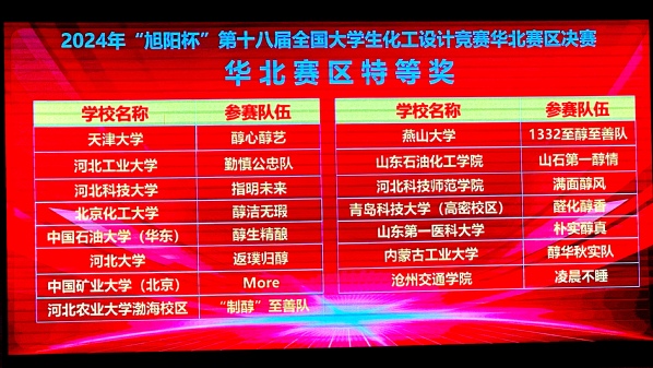 全国大学生化工设计竞赛是全国高校化工专业级别最高、影响力最大的年度大赛,有效推动了化工类专业化工设计和实验教学工作。近年来,我校立足国家能源战略,充分发挥学科优势,主动做好相关赛事的组织、培训与选拔工作,积极引导大学生强化工程意识、提高创新能力。本次华北赛区决赛,我校两支参赛队伍得到专家评委的一致好评。