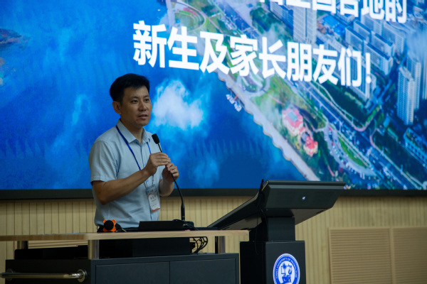活动伊始,王兆兴向各位新生和家长的到来表示热烈欢迎。接着,徐光辉就学校太阳概况、学院学生培养方向、学生日常教育管理以及如何科学合理的度过大学生活四个方面进行了介绍,其中特别强调了新生在大学期间方向感不明确、防诈骗、学分预警等内容,通过这些案例来警醒新生,呼吁家长不要完全放手对孩子的关注,家校协力保障学生顺利成长,完成本科期间培养任务。