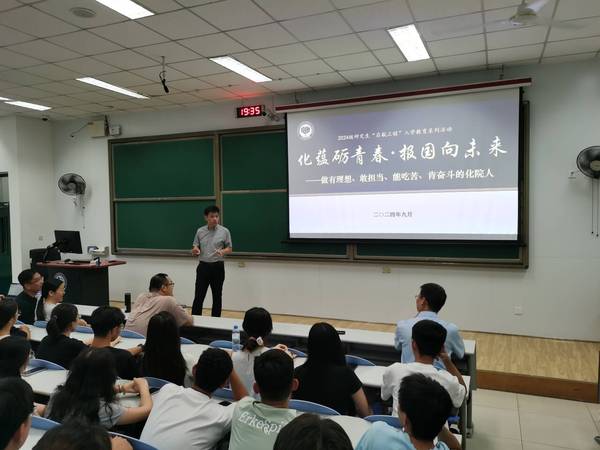 副院长刘东从学院的历史底蕴、行业担当、师资力量等方面,为大家立体刻画了一个历史悠久、底蕴厚重、英才辈出、设备齐全、师资雄厚的高水平研究型学院形象。刘院长谈到,石油化工行业是一个国家经济的命脉,是能源版图的重要组成部分,既要立足于石油转化和利用上的传统方向,又要紧紧围绕“双碳”战略目标迎接新的发展机遇,开辟新的研究方向,才能牢牢端稳能源饭碗。最后,刘院长鼓励大家要抓住时代赋予的发展机遇,志存高远、勇挑重担,学以致用、传承创新,做有理想、敢担当、能吃苦、肯奋斗的青春奔跑者。