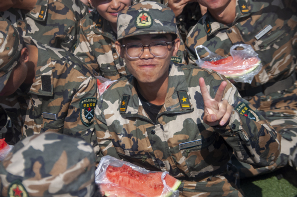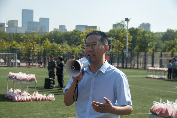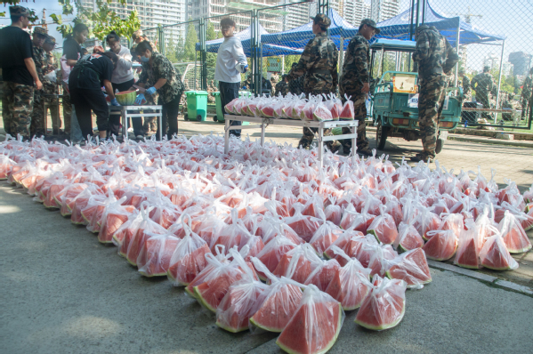 随后,学院领导为参训学生切分西瓜,同时向见习同学表示关心。烈日炎炎,切分下的西瓜给予了学院参训新生最真切的慰问。