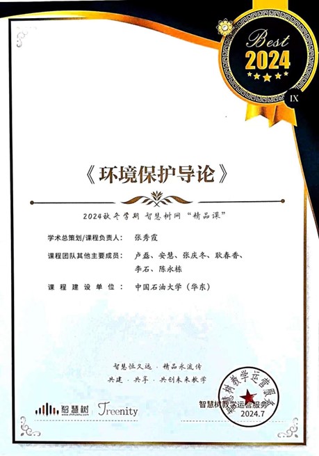 近日,环境与安全工程系张秀霞教授团队建设的《环境保护导论》课程被评为智慧树平台2024秋冬“精品课”。