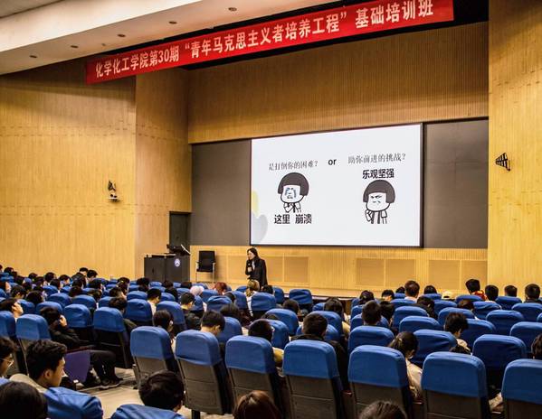 心理讲座后,郭孟为学员们开展了入党启蒙教育。他首先将党比作“史上最强创业团队”,用生动有趣的语言讲述了党从成立之初到如今百年大党的奋斗历程。随后详细地向学员们介绍了“发展党员的的工作流程”中的五个重要的步骤:“申请入党”-“入党积极分子的确定和培养教育”-“发展对象的确定和考察”-“预备党员的接收”-“预备党员的教育考察和转正”。并强调了各个流程中的注意事项与要求。最后,他鼓励学员们端正入党动机,积极入党,勇于为实现中华民族伟大复兴而奉献青春力量。