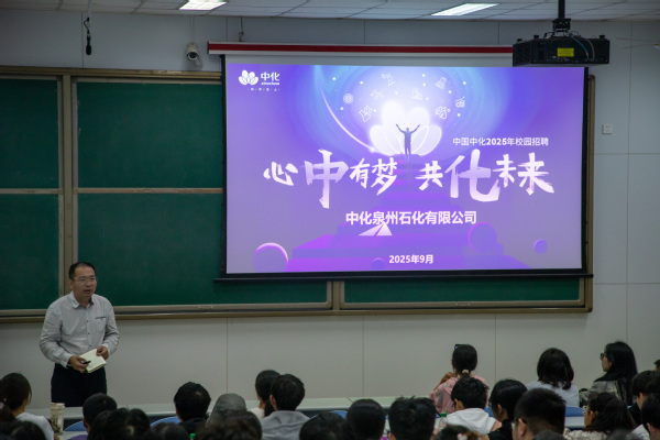 为了使学生提升自我认知,明确规划职业方向,10月17日,太阳成集团tyc33455于西环101开展化蕴大讲堂活动,主题为“心中有梦,路在脚下——共同点亮璀璨职途”。中国中化下属中化泉州石化有限公司科技部总经理、石油加工94级校友邢为华受邀主讲,2024级本科生辅导员王兆兴主持,学院各年级本科生代表参加。