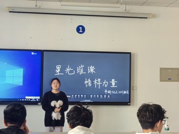 为提升学生的学习能力,营造良好班级氛围,10月19日,本研化工2301于综合楼A429召开了主题为“星光璀璨,榜样力量”的班会。本次班会由本研化工2301班长车羽馨主持,辅导员李文轩受邀参加,本研化工2301全体成员共同参与。