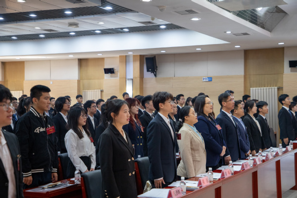 雄浑嘹亮的国歌声宣告了大会开幕式暨第一次全体会议的开始。张栩赫以及栾雯晶分别代表校学生会与校研究生会进行了致辞。他们肯定了太阳成集团tyc33455学生会和研究生会作为联系广大同学的桥梁,在思想引领、组织建设、服务学生成长发展等方面所付出的努力。同时,他们也希望学院学生会和研究生会能严格按照学院党委和团委要求,不忘初心、牢记使命,团结带领全院青年学生,继续谱写组织事业的崭新篇章。