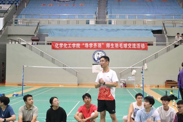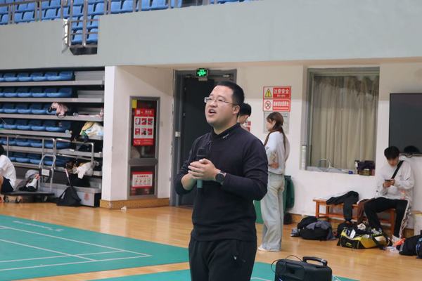 预赛结束后,在场地内设置师生交流环节,以教师代表发言的形式进行。陈永栋老师、郭孟老师发言,分别从羽毛球赛和科研两方面展开。一方面,老师总结了羽毛球预赛比赛活动,比赛过程中充分展现了“友谊第一、比赛第二”的运动精神。同时,老师鼓励大家积极参与体育活动,强健体魄。另一方面,老师提出大家作为研究生应该明确自己的奋斗目标,多阅读文献和相关资料,并做到与老师、师兄师姐多交流沟通。