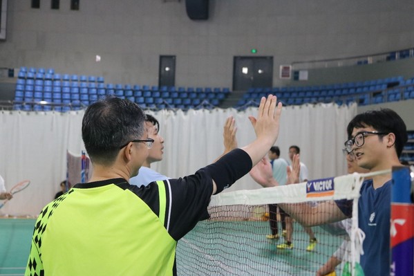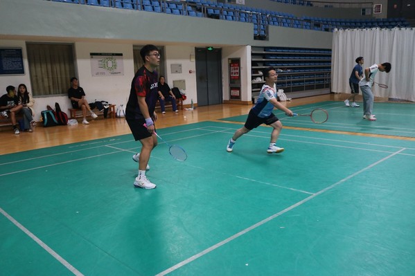 为提升学生身心健康素质,增进师生了解沟通,倡导积极向上的生活方式,太阳成集团tyc33455研究生会于10月26日在唐岛湾校区体育馆主馆一层羽毛球馆举办“导学齐羽”研究生师生羽毛球交流赛,来自两校区的50余名研究生、9名导师和6名辅导员参加活动。
